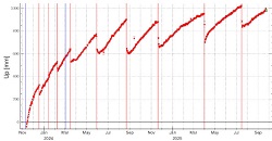 Jeudi 25 septembre 2025, 7h55, une incandescence est observée au niveau des bouches éruptives dans le cratère de l’Halema’uma’u, en particulier au niveau de la bouche sud. Le sommet est toujours en phase d’inflation et les modèles indiquent qu’un épisode 34 pourrait débuter entre le 28 septembre et le 1er octobre 2025.