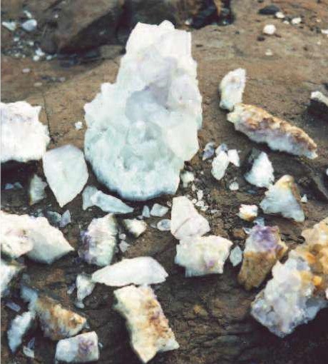 Il entre dans la composition de certaines roches volcaniques telles que les rhyolites et les dacites. Les basaltes du Brésil, d’Uruguay et du nord de l’Argentine contiennent également de nombreuses géodes remplies de quartz. On y trouve notamment de l’améthyste enrobée d’agate et, plus rarement, de la citrine, une variété de quartz jaune.