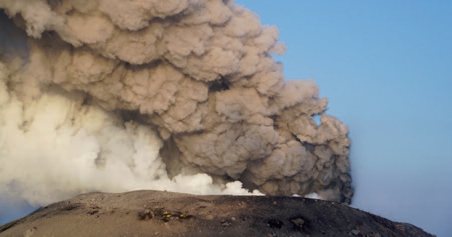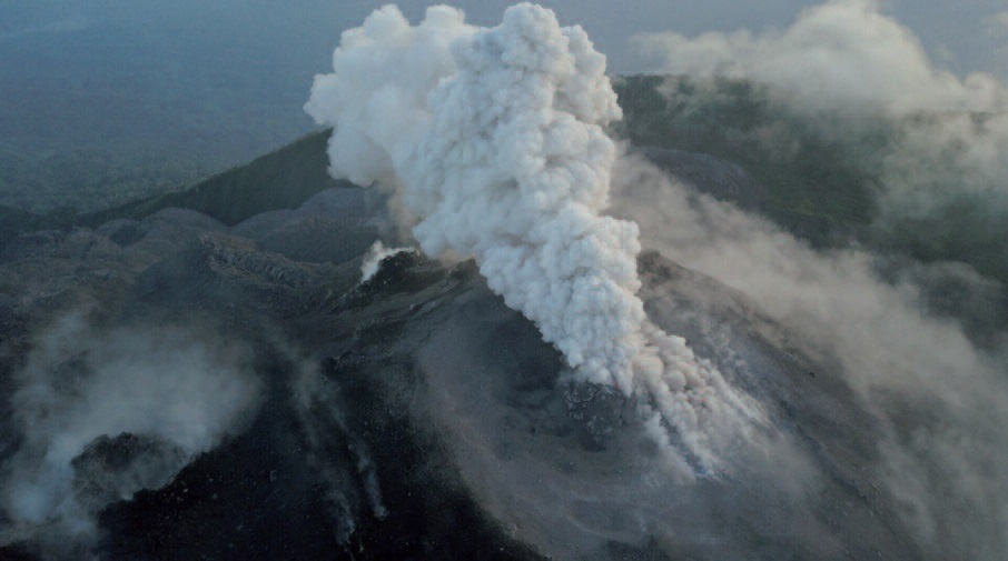 6. Explosion du dôme 2023 dans le cratère de l’Ibu, depuis un drone.